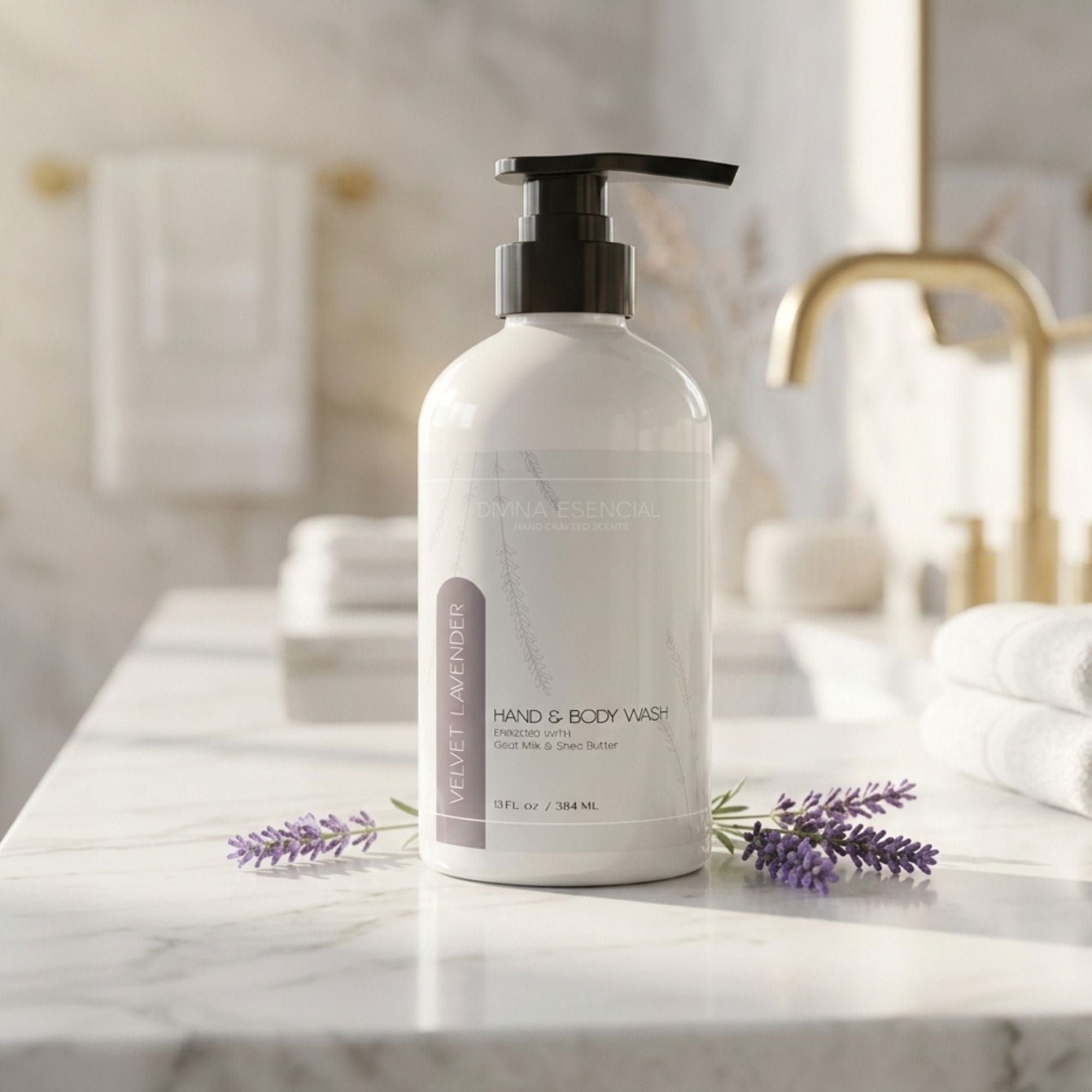 A gentle hand soap and body lotion infused with soft lavender notes, created for everyday calming care
