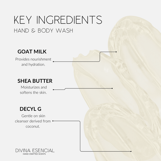 Our gentle gel formula, free from parabens and gluten, combines the soothing benefits of goat's milk with the hydrating power of shea butter and kosher vegetable glycerin. Ideal for daily use, it nourishes, moisturizes, and delicately scents your skin.